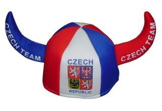 Fanhoed met hoorntjes (Klobouk pro fanousky rohy). Maat: 52 cm, materiaal: 100% polyester.