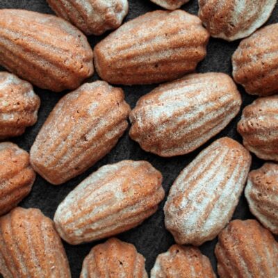 Ik gebruik de keukenmachine (het hakmes) en daarna kneed ik het deeg door met de hand. Het blijft korrelig. Het deeg is vrij droog en brokkelig. Verpak het in huishoudfolie en laat het in de koelkast rusten. Liefst een nacht, maar minimaal een paar uur. Vul de vormpjes licht in met gesmolten boter. (Dat hoeft alleen voor het eerste gebruik.) Vul de vormpjes met het deeg maar niet te vol en druk het deeg goed aan. Bakplaat met bakpapier bekleden en de vormpjes erop zetten. Baktijd: ca.7 – 10 minuten (kleine vormpjes natuurlijk korter). Maar hou ze in de gaten want ze verbranden snel, Ze moeten vrij licht blijven. Keer het vormpje om, klop er op met bijvoorbeeld een pollepel en bestuif het koekje meteen met poedersuiker.